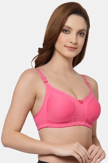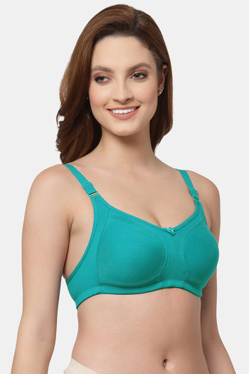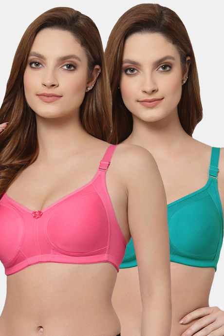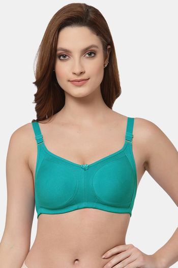 Floret Double Layered Non Wired Full Coverage Super Support Bra - Tomato Robin Blue