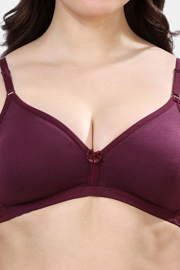 Floret Double Layered Non Wired Medium Coverage T-Shirt Bra - Wine
