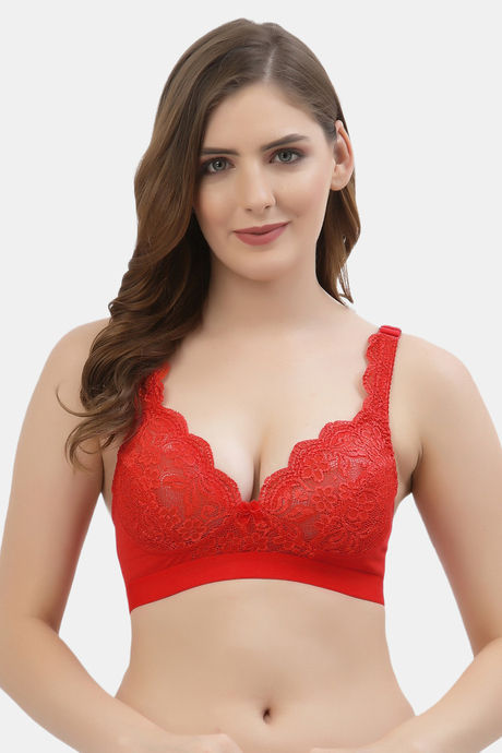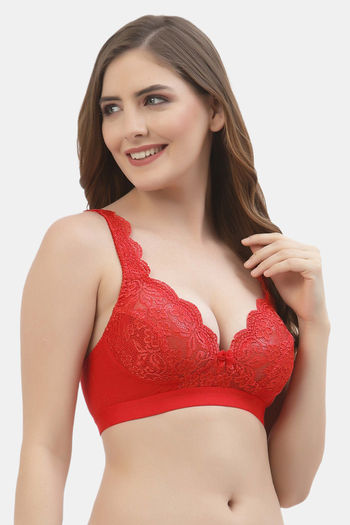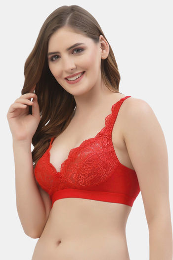 Floret Lightly Lined Non-Wired Full Coverage Lace Bra - Red
