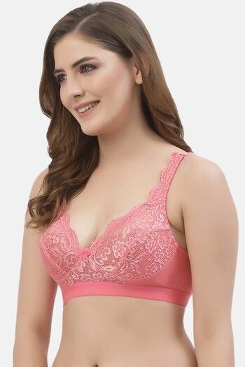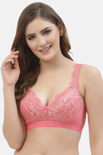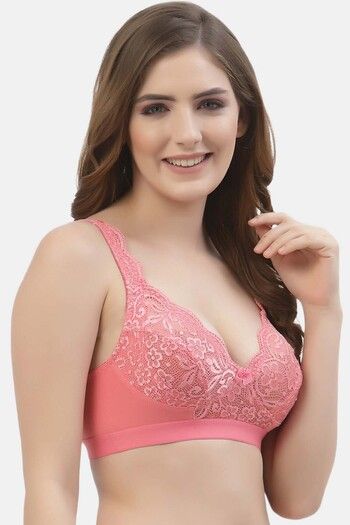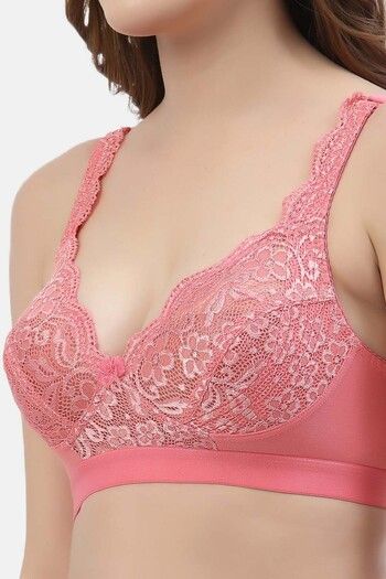 Floret Lightly Lined Non-Wired Full Coverage Lace Bra - Rose