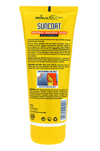 Gemblue Biocare Suncoat Sunscreen Cream Spf45, (200 ml)