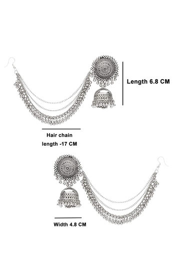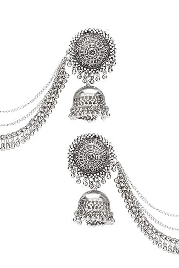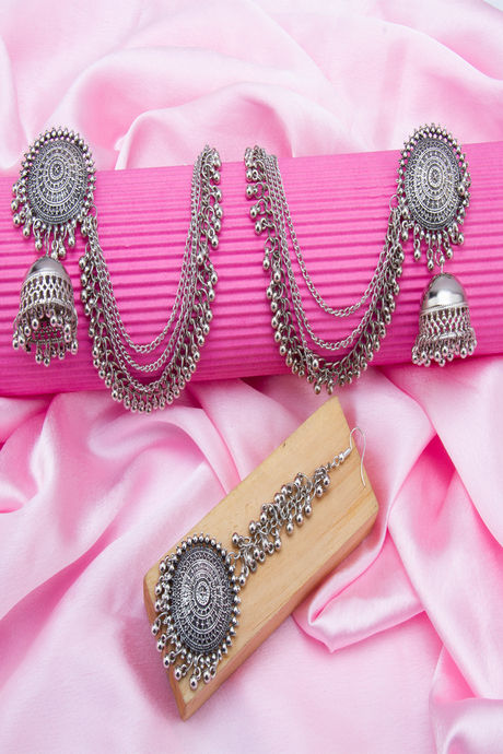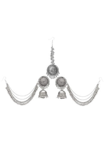 Yellow Chimes German Oxidised Silver Traditional Maang Tikka with Earrings