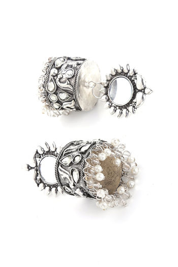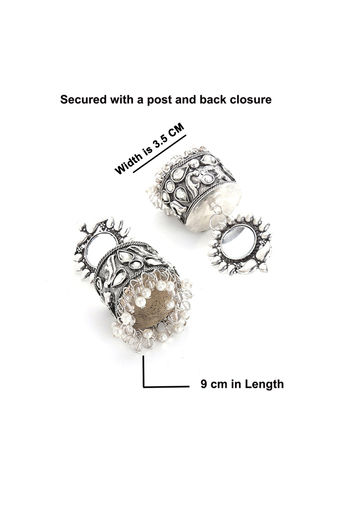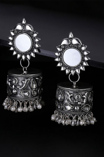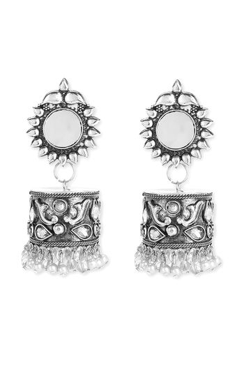 Yellow Chimes German Silver Oxidized Light weight Mirror Worked Jhumka Earrings