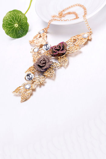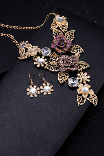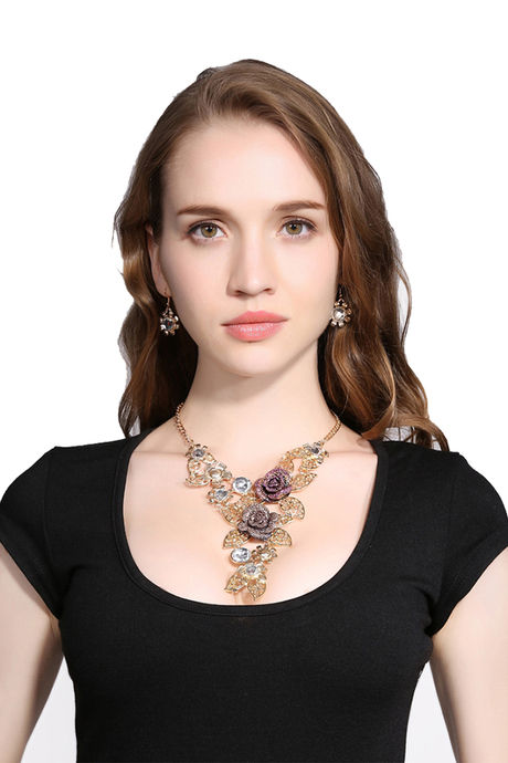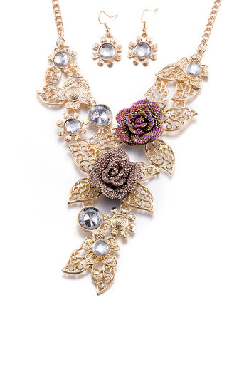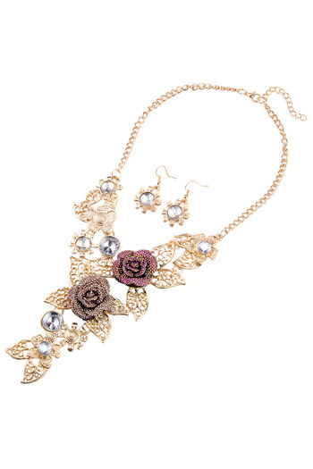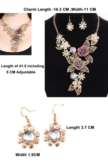 Yellow Chimes Gold Plated crystal studded Rose Flower Design Choker Necklace set
