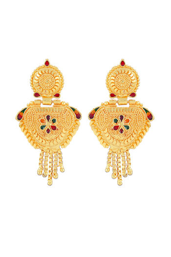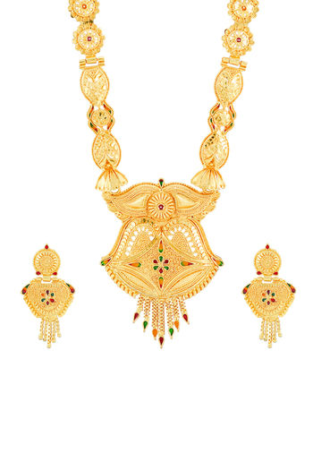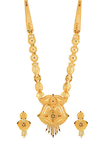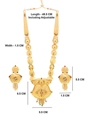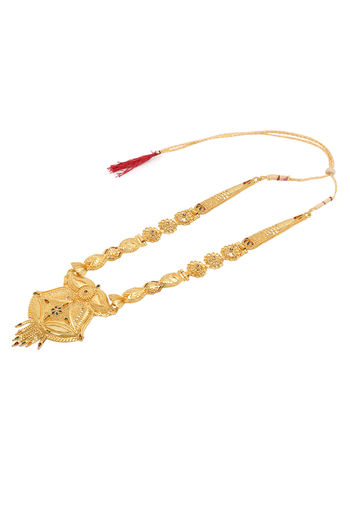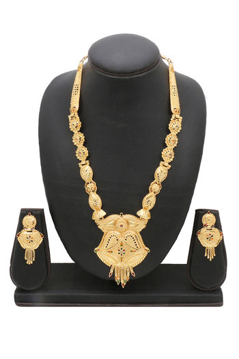 Yellow Chimes Gold Plated Designer Long Traditional Necklace Set - Gold