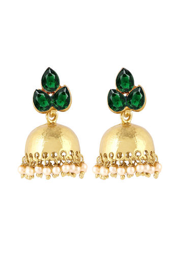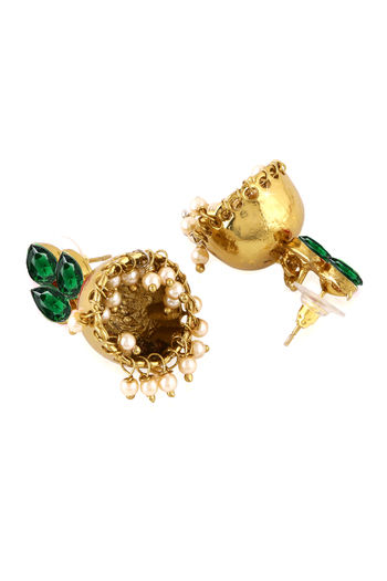 Yellow Chimes Gold Plated Stone studded pearl jhumka earrings - Gold