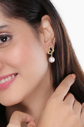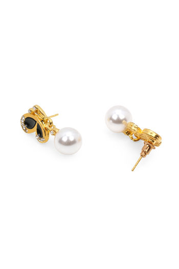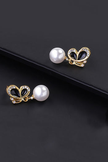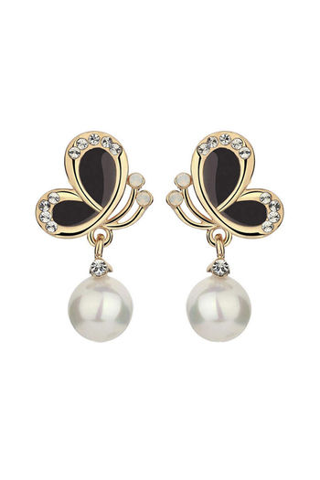 Yellow Chimes Gold Toned Butterfly Pearl Crystal Drop Earrings