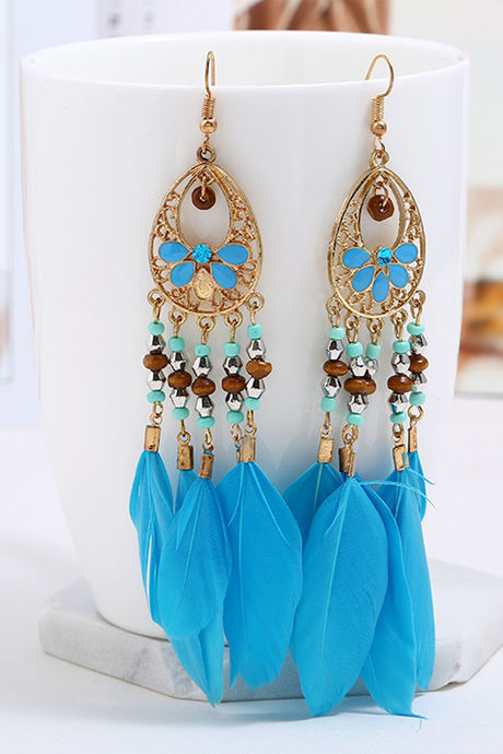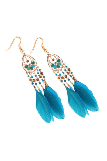 Yellow Chimes Gold Toned Trending Colors Feathers Long Tassel Earrings