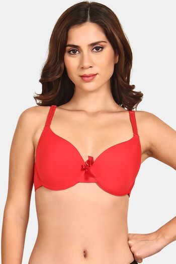 Buy Prettycat Women Lightly Padded Underwire Plunge Bra With Bow - Red