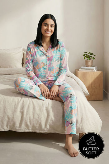 Buy Zivame Buttersoft Knit Poly Pyjama Set - Ethereal Gr