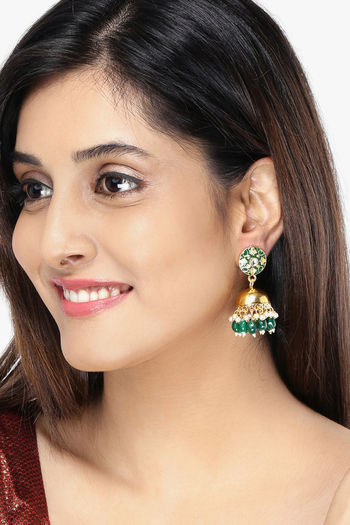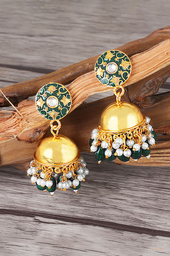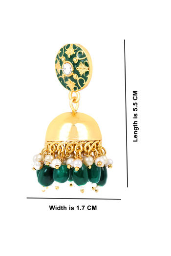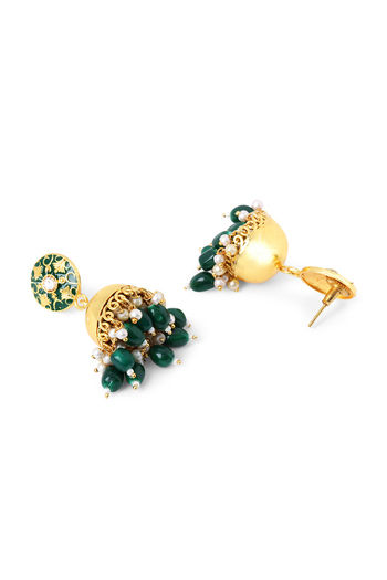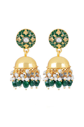 Yellow Chimes Green and Gold Handpainted Ethnic Meenakari Jhumka Earrings