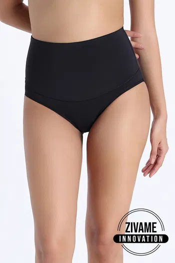 Zivame High Rise Full Coverage Tummy Tucker Hipster Panty - Black Beauty