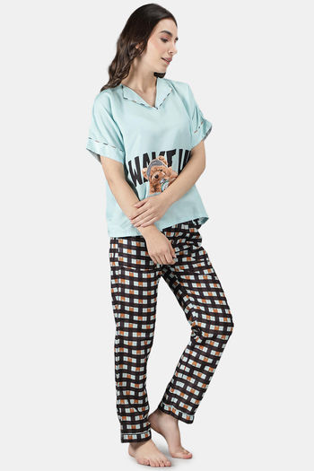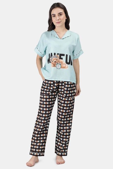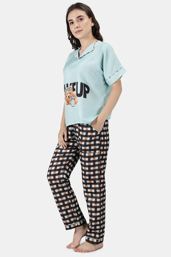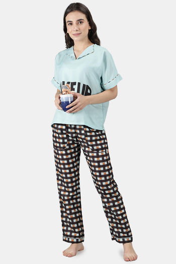 House of Comfort Poly Cotton Loungewear Set - Mint Green