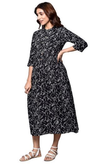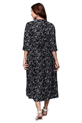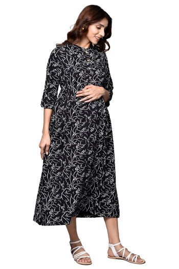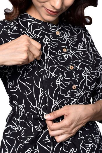 Inner Sense Organic Cotton Bamboo Nursing Dress - Black Line Art