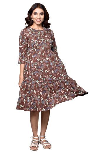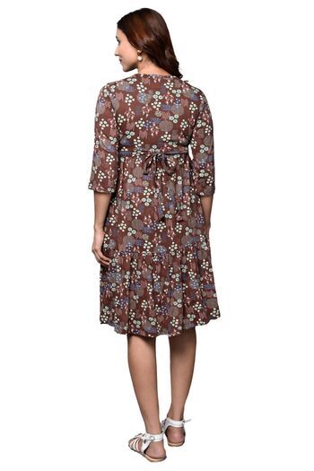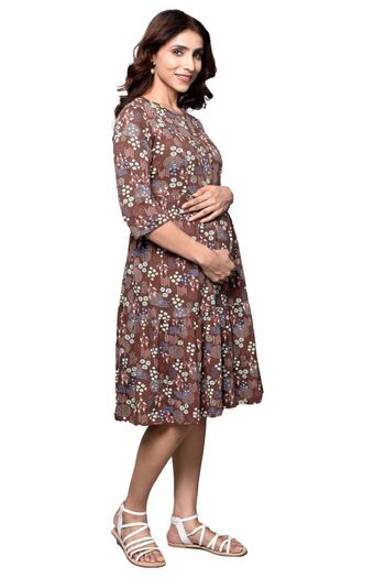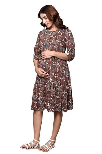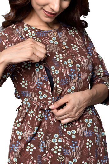 Inner Sense Organic Cotton Bamboo Nursing Dress - Brown Vintage Garden