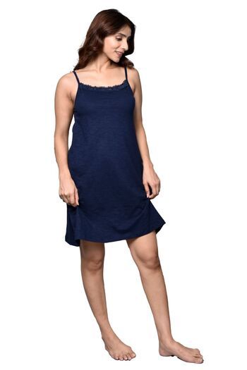Inner Sense Organic Cotton Short Nightdress - Navy Blue