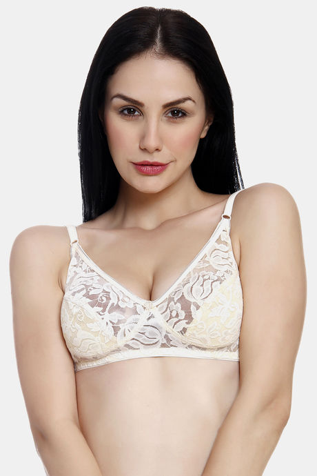 Innocence Single Layered Non-Wired Full Coverage Lace Bra - Skin