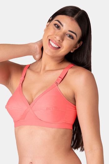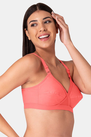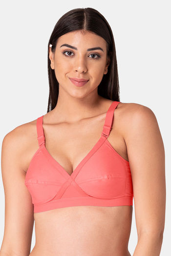 Komli Single Layered Non-Wired Full Coverage Minimiser Bra - Coral