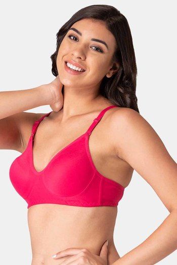 Komli Double Layered Non-Wired Medium Coverage T-Shirt Bra - Dark Pink