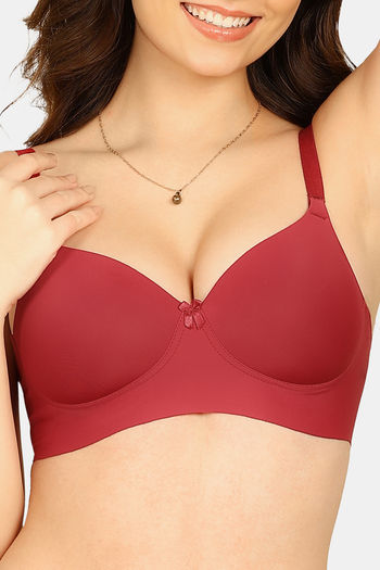 Komli Padded Non-Wired Full Coverage T-Shirt Bra - Maroon