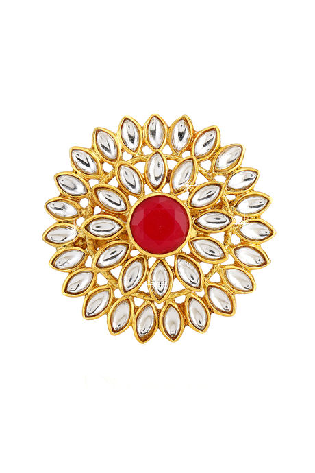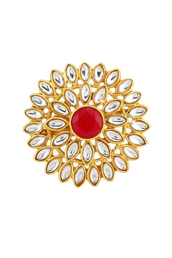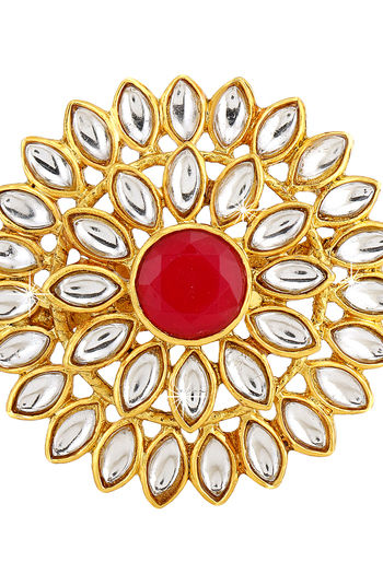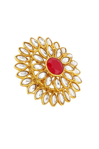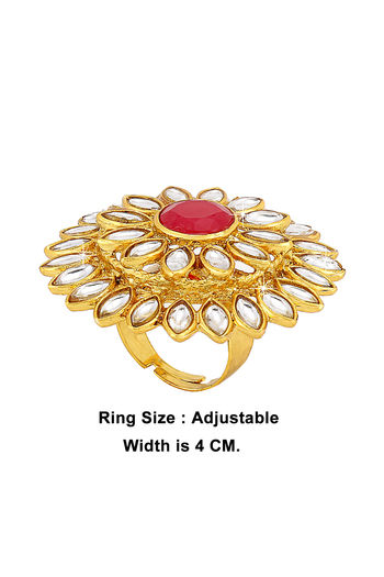 Yellow Chimes Kundan Studded Gold Plated Adjustable Ring - Gold