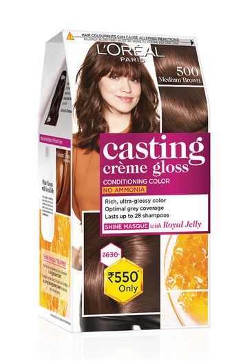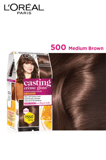 L'Oreal Paris Casting Creme gloss Hair Color, 500 Medium Brown - 87.5 g + 72 ml
