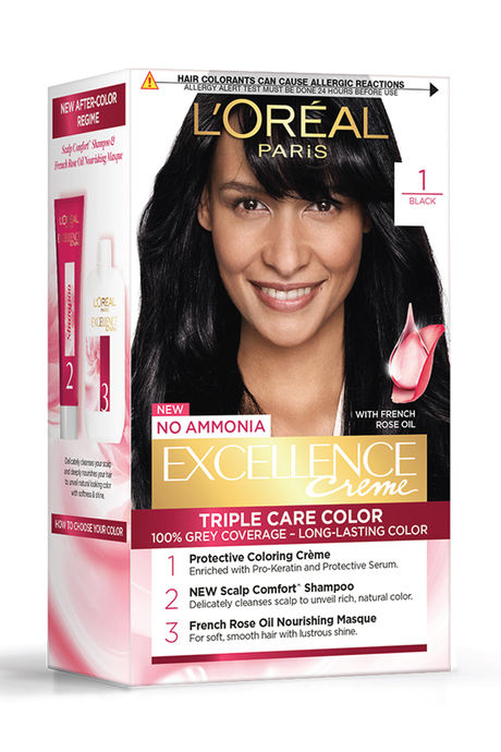 L'Oreal Paris Excellence Creme Hair Color, 1 Black - 72 ml + 100 g