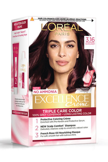 L'Oreal Paris Excellence Creme Hair Color, 3.16 Burgundy - 72 ml + 100 g