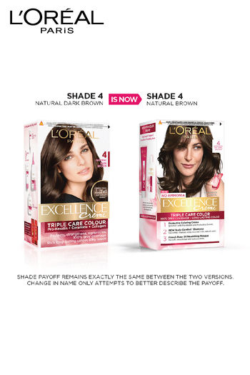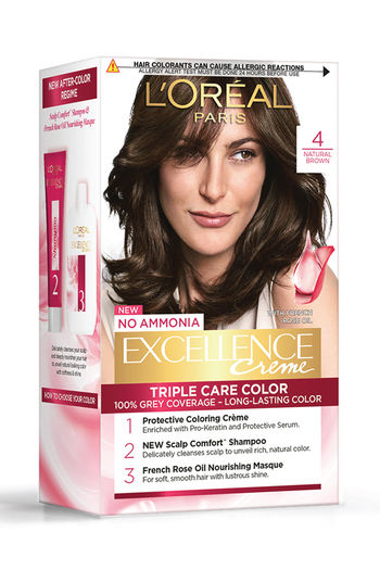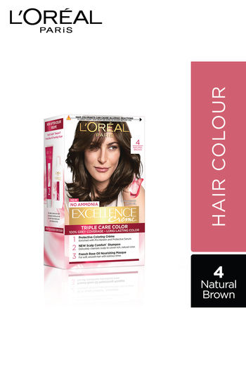 L'Oreal Paris Excellence Creme Hair Color, 4 Natural Brown/Natural Dark Brown - 72 Ml + 100 G