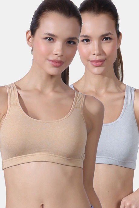 Lady Lyka Cotton Lycra Sports Bra (Pack of 2) - Multicolor