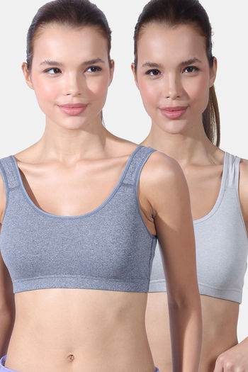 Lady Lyka Cotton Lycra Sports Bra (Pack of 2) - Multicolor
