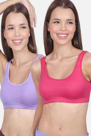 Lady Lyka Cotton Lycra Sports Bra (Pack of 2) - Multicolor