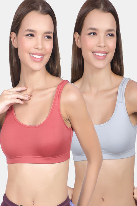 Lady Lyka Cotton Lycra Sports Bra (Pack of 2) - Multicolor