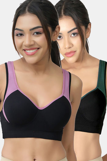 Lady Lyka Cotton Padded Sports Bra (Pack of 2) - Multicolor
