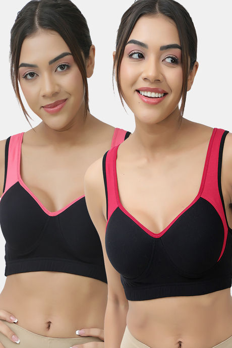 Lady Lyka Cotton Padded Sports Bra (Pack of 2) - Multicolor