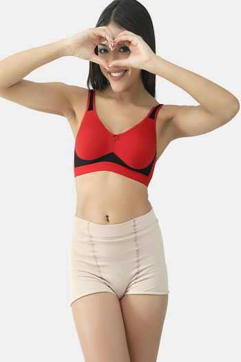 Lady Lyka Cotton T-Shirt Sports Bra - Red