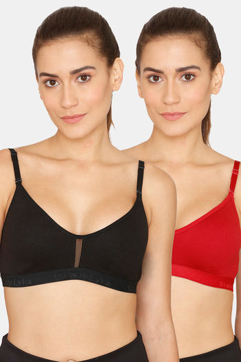 Lady Lyka Medium Impact Seamless Sports Bra (Pack of 2) - Black Maroon