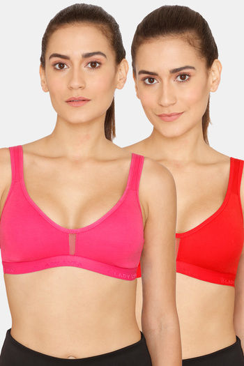 Lady Lyka Medium Impact Seamless Sports Bra (Pack of 2) - Fuschia Red