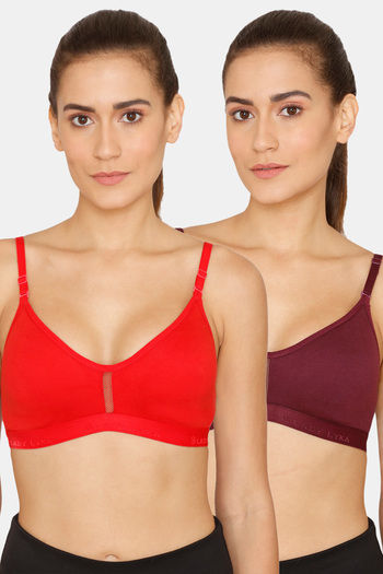 Lady Lyka Medium Impact Seamless Sports Bra (Pack of 2) - Red Wine