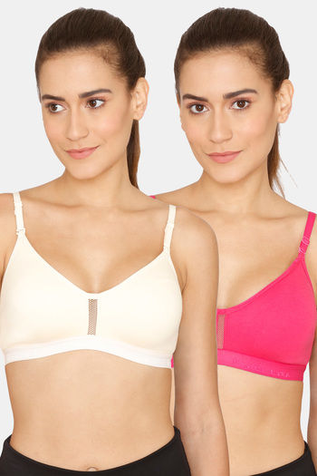 Lady Lyka Medium Impact Seamless Sports Bra (Pack of 2) - Skin Fuschia