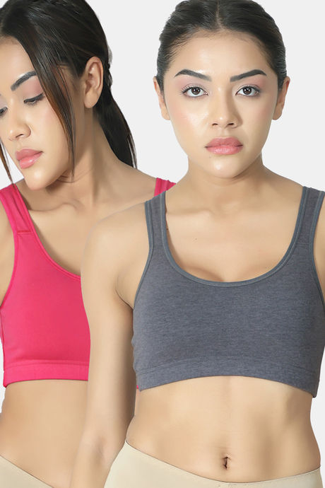 Lady Lyka Soft Strechable Sports Bra (Pack of 2) - Multicolor