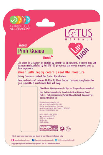 Lotus Herbals Lip Lush Pink Gauva Rush Spf 20 (4 g)