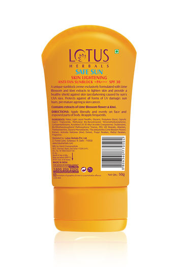 Lotus Herbals Safe Sun Skin Lightening Anti -Tan Sunblock Pa+++ Spf-30 (50 g)