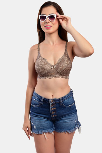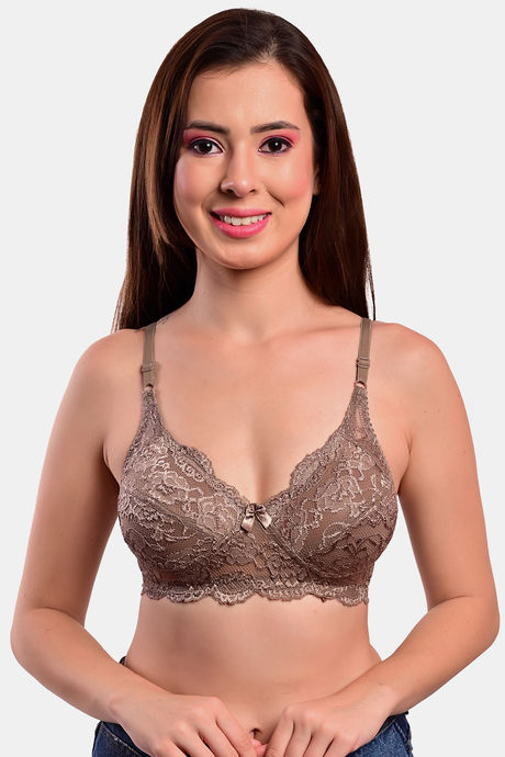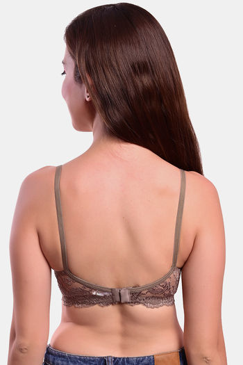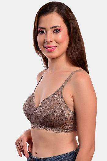 Lotus Leaf Single Layered Non Wired Full Coverage Lace Bra - Brown
