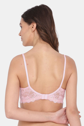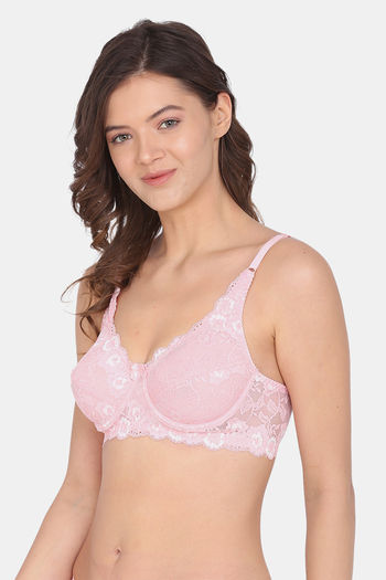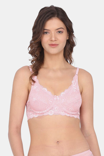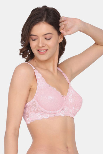 Lotus Leaf Single Layered Wired Full Coverage Lace Bra - Pink