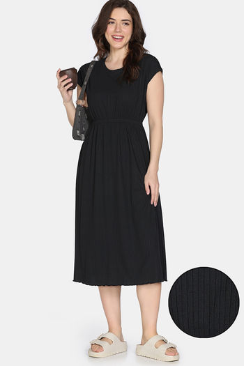 Zivame 2 Mile Fashion Knit Poly Loungewear Dress - Black Beauty