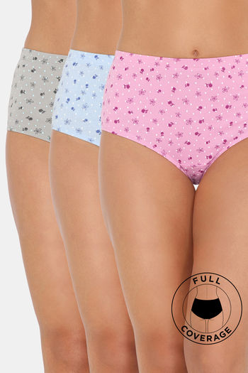 Zivame Medium Rise Full Coverage Hipster Panty (Pack of 3) - Multicolor