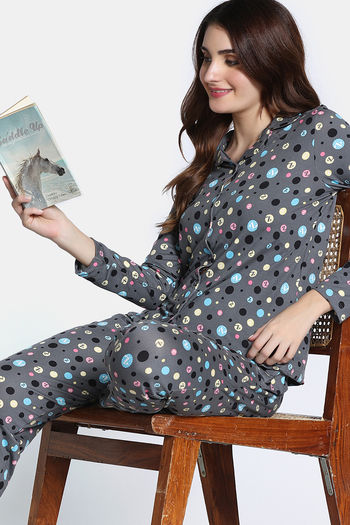 Zivame Winter Whispers Knit Cotton Pyjama Set - Thunderstorm