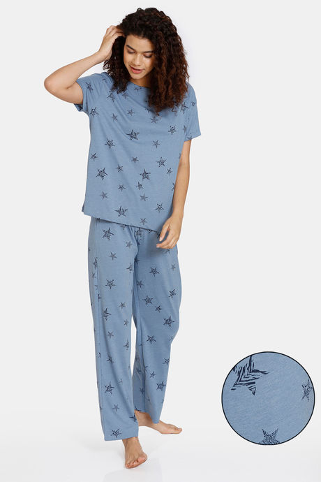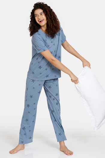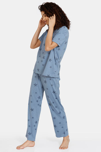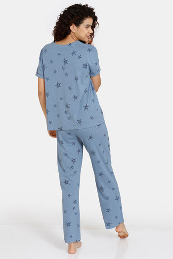 Marks & Spencer Cotton Rich Star Print Pyjama Set - Blue Mix