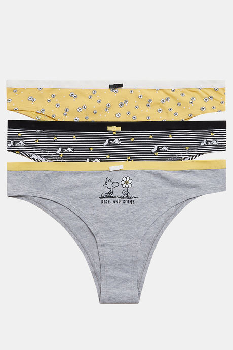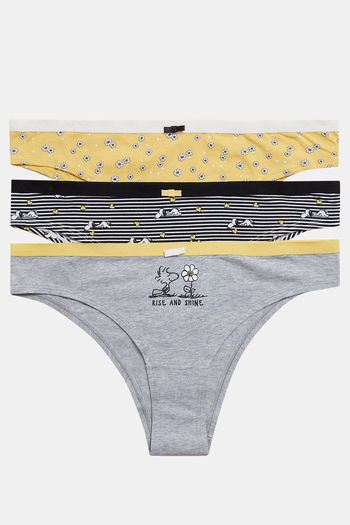 Marks & Spencer Low Rise Three-Fourth Coverage Thong Panty (Pack of 3) - Yellow Mix
